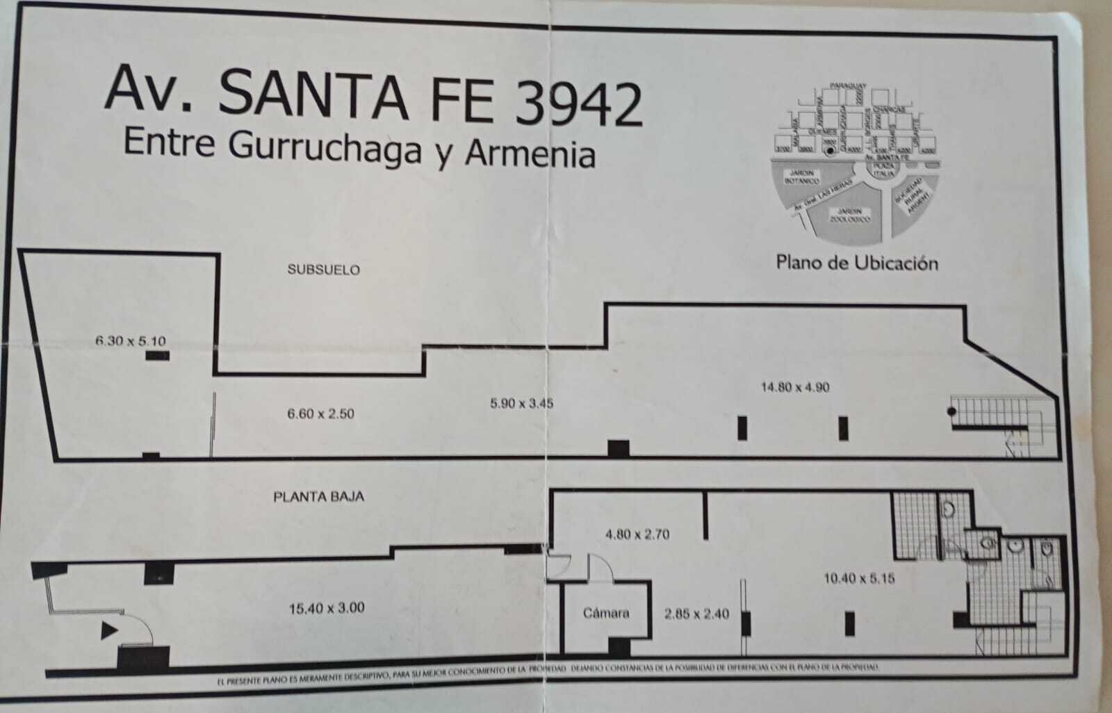 AV SANTA FE Y ARMENIA 270 M2 EN 2 PLANTAS 3 MTS DE FRENTE APTO GASTRONOMIA LIVIANA SIN TIRAJE EXPENSAS AGOSTO 2025